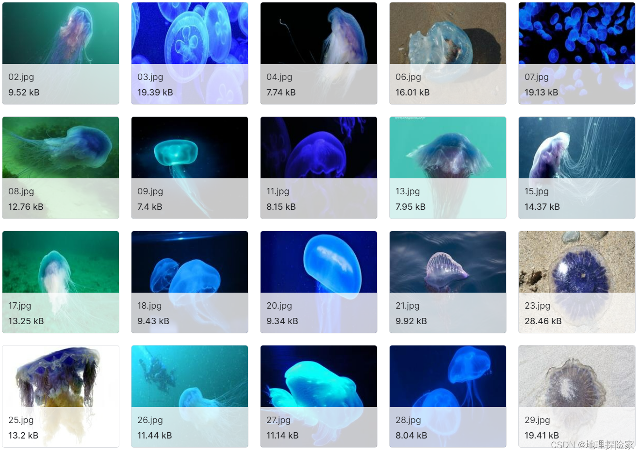 - 六种不同种类的水母图像数据集数据说明:涵盖月水母、桶形水母等 6 类水母,共 1879 张图片,每类按物种单独分类,附带详细物种生物学特征说明。适用场景:水母物种识别、海洋浮游生物监测模型训练。