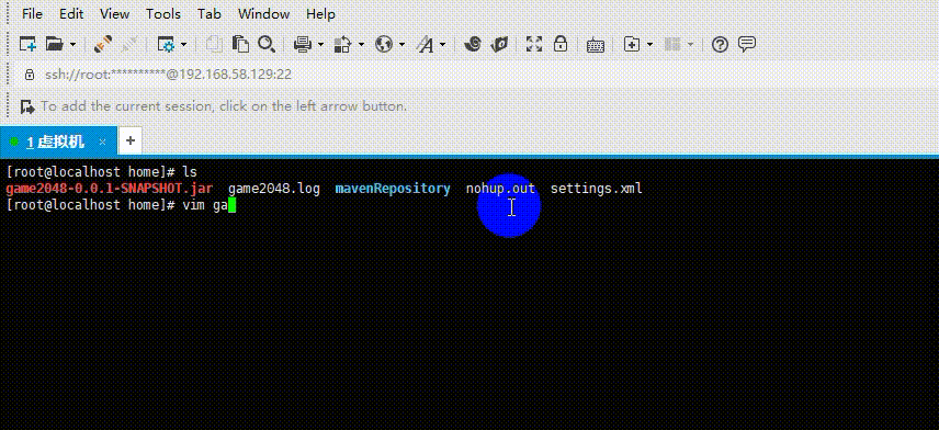 [root@localhost home]# nohup java -jar game2048-0.0.1-SNAPSHOT.jar > ./game2048.log &