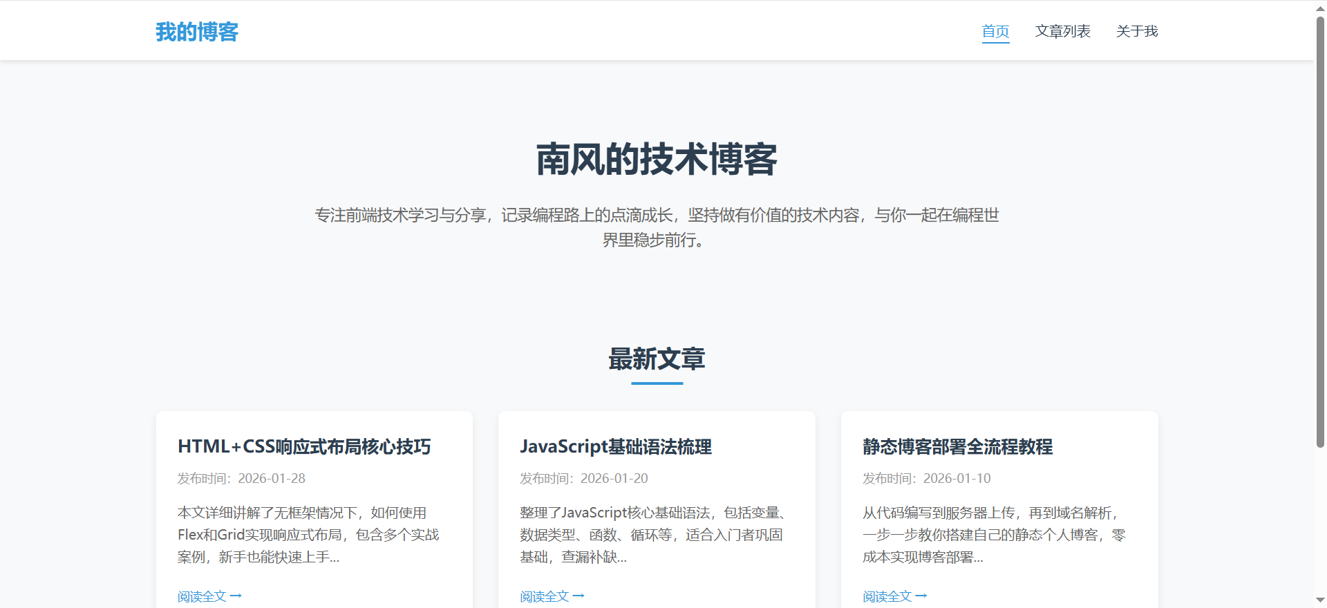 步骤2:验证访问结果,若配置正确,浏览器地址栏左侧会显示“小锁”图标(表示连接安全),同时会显示博客首页,点击导航栏的各个页面,确认页面可正常跳转,样式无错乱,说明HTTPS访问已成功实现。
