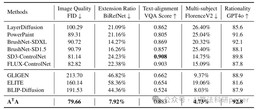 方法:论文提出自适应变换单智能体(AᵀA),以Hunyuan-DiT为基础,通过含反向排列PosAgent块的RDT模块预测位移、调整主体位置,加位置切换嵌入支持“自适应/固定”模式,经混合训练后,在文本引导的背景补全任务(可变/固定主体位置)中表现优异。