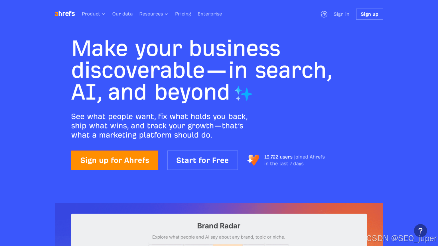 - 核心定位:以精准外链数据闻名,新增AI功能后聚焦“数据驱动型SEO”。