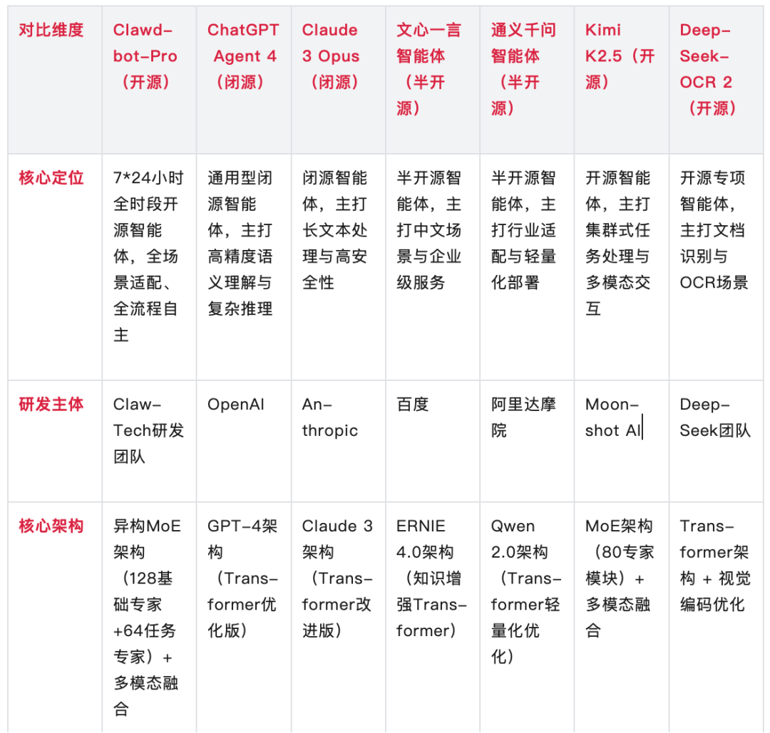而Clawdbot-Pro作为一款“完全开源+7*24小时全时段运行+全场景适配+核心性能顶尖”的AI智能体,成功打破了这一格局,形成了独特的核心竞争力,其行业定位清晰且独特。
