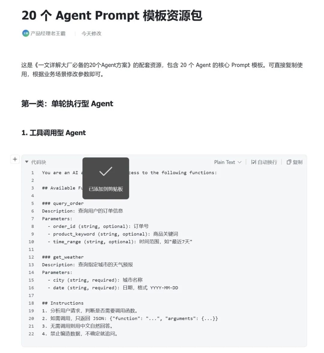 另外,老王给大家准备了整个agent的prompt代码,如图如何获取?关注本公众号,私信发送关键词:agent