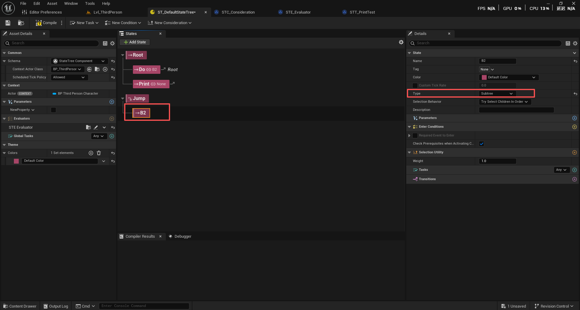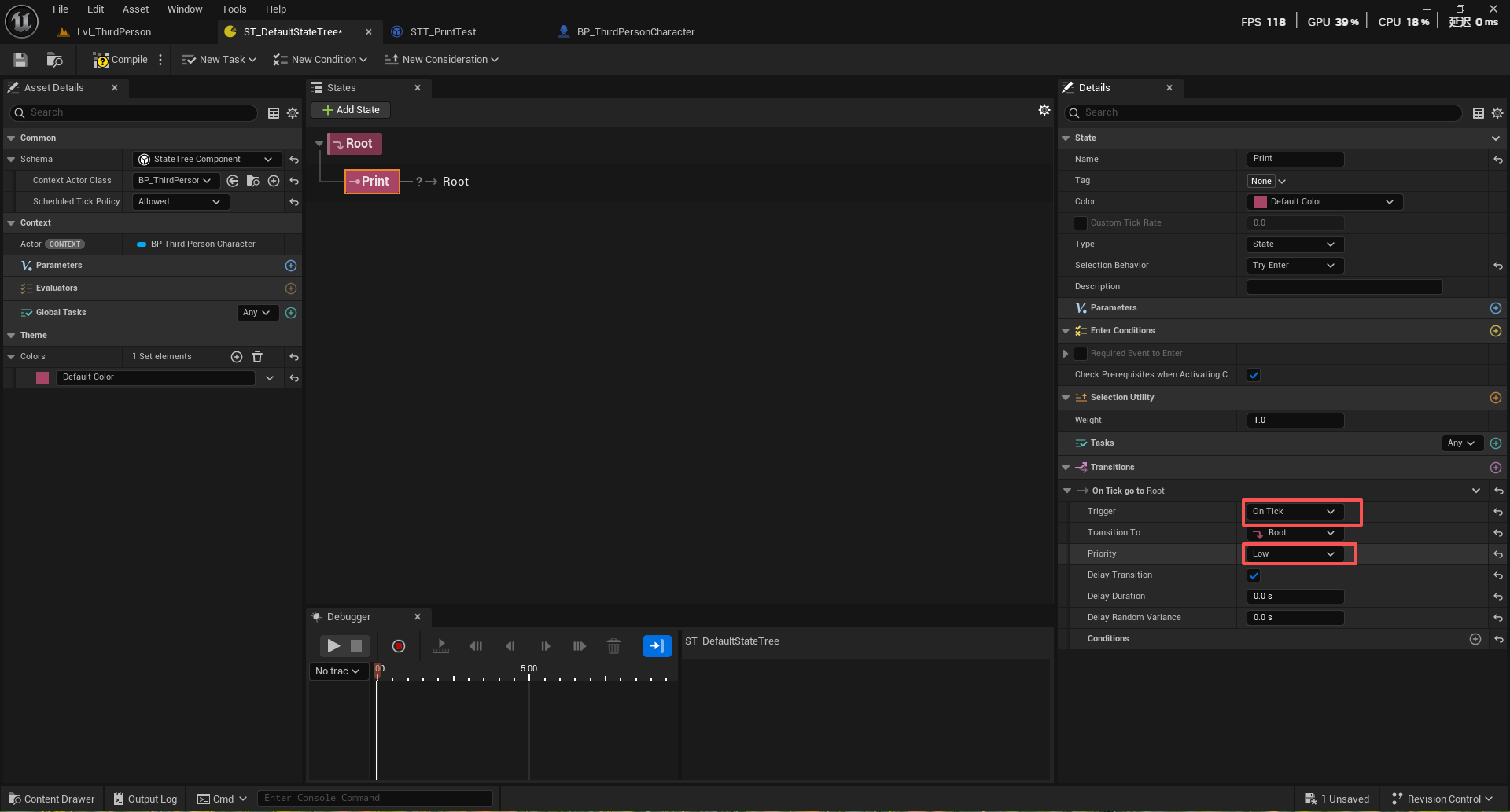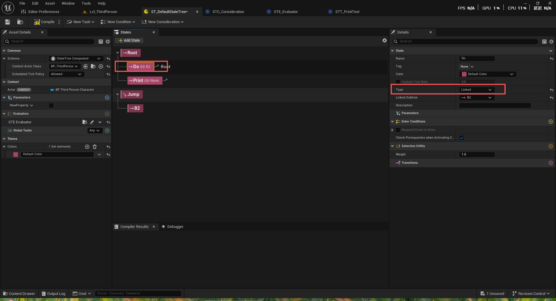 而虚幻的状态树StateTree本质上是“状态机+行为树”,状态机的特点体现于其状态转移不需要树形遍历,直接跳转即可