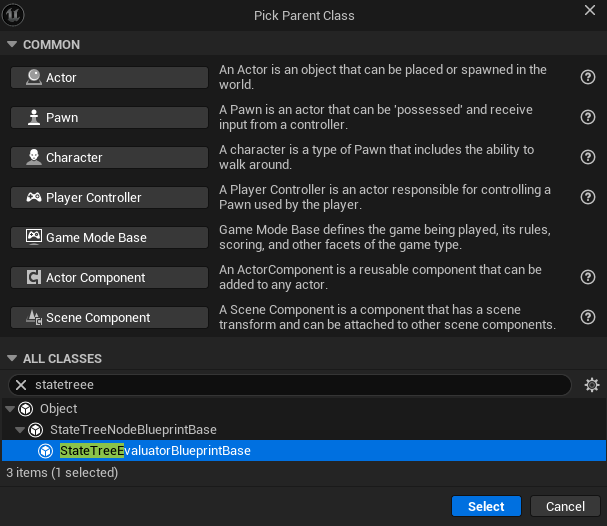点击NewTask创建一个新的任务,任务继承自StateTreeTaskBlueprintBase,当然,在创建蓝图类里选择继承这个类也可以创建这个任务。