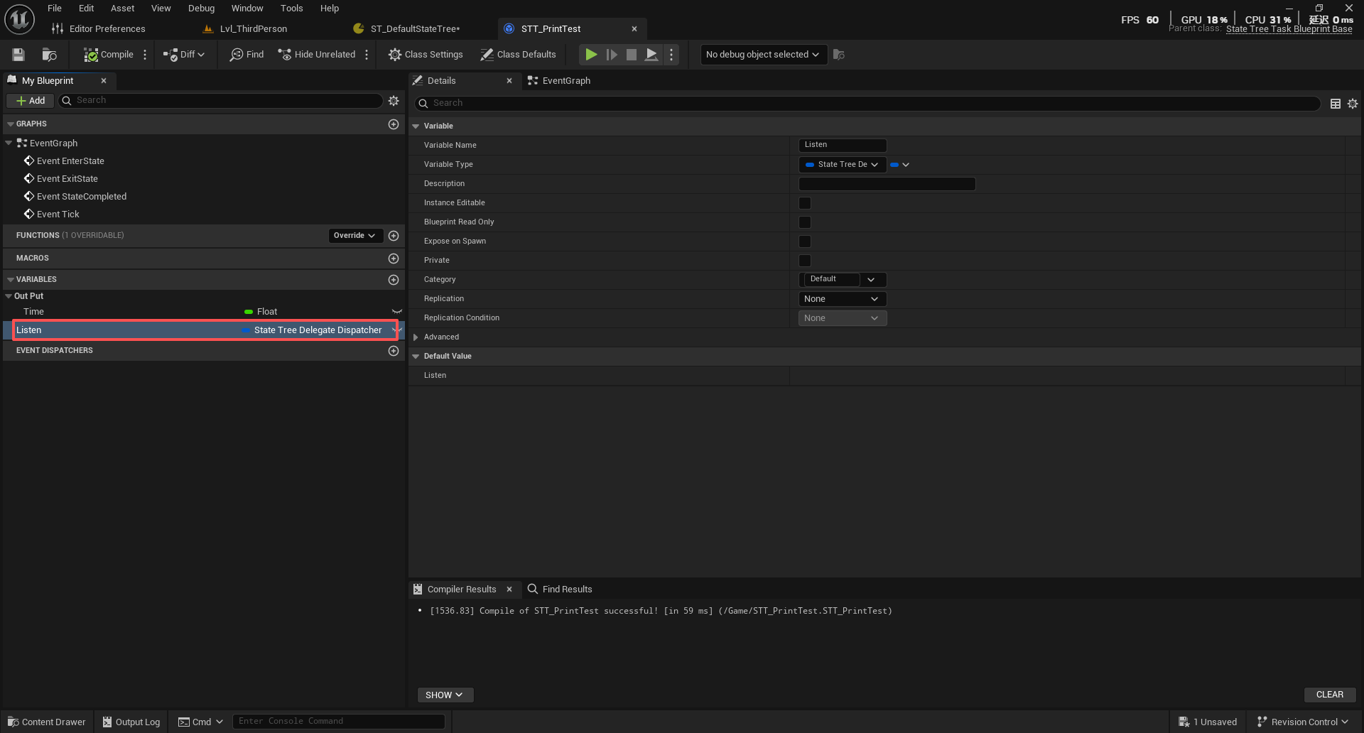 StateTreeEditorModule(编辑器模块),这是State Tree系统的 可视化编辑器模块 ,提供状态树的可视化编辑、调试和编译功能,在开发阶段虚幻编辑器中创建和编辑状态树