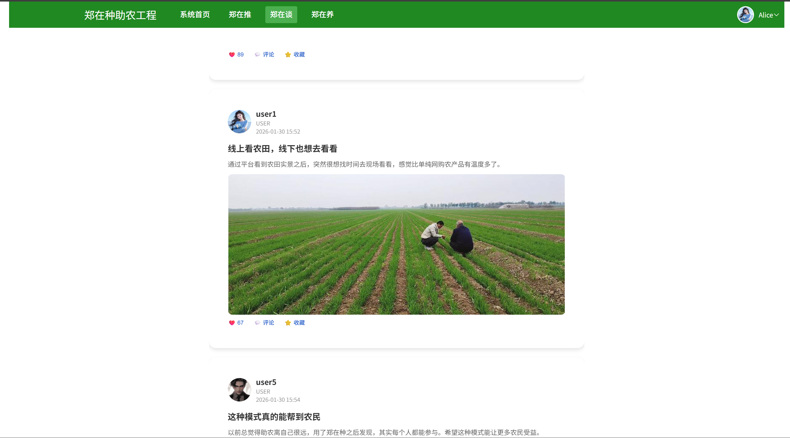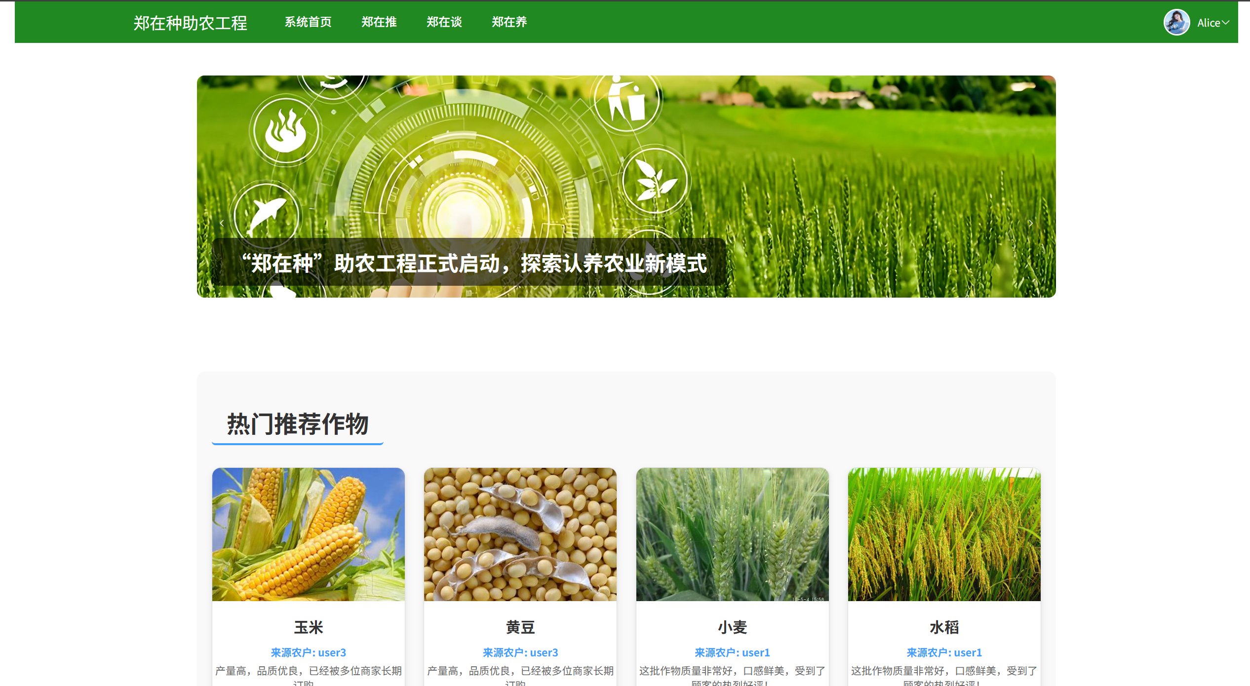 “郑在种”是一个兼具技术实现与现实价值的农业数字化实践平台。它结合了前沿的 Web 技术与现实农业业务需求,从用户体验、农户利益保障、社区互动等角度进行了深度设计。