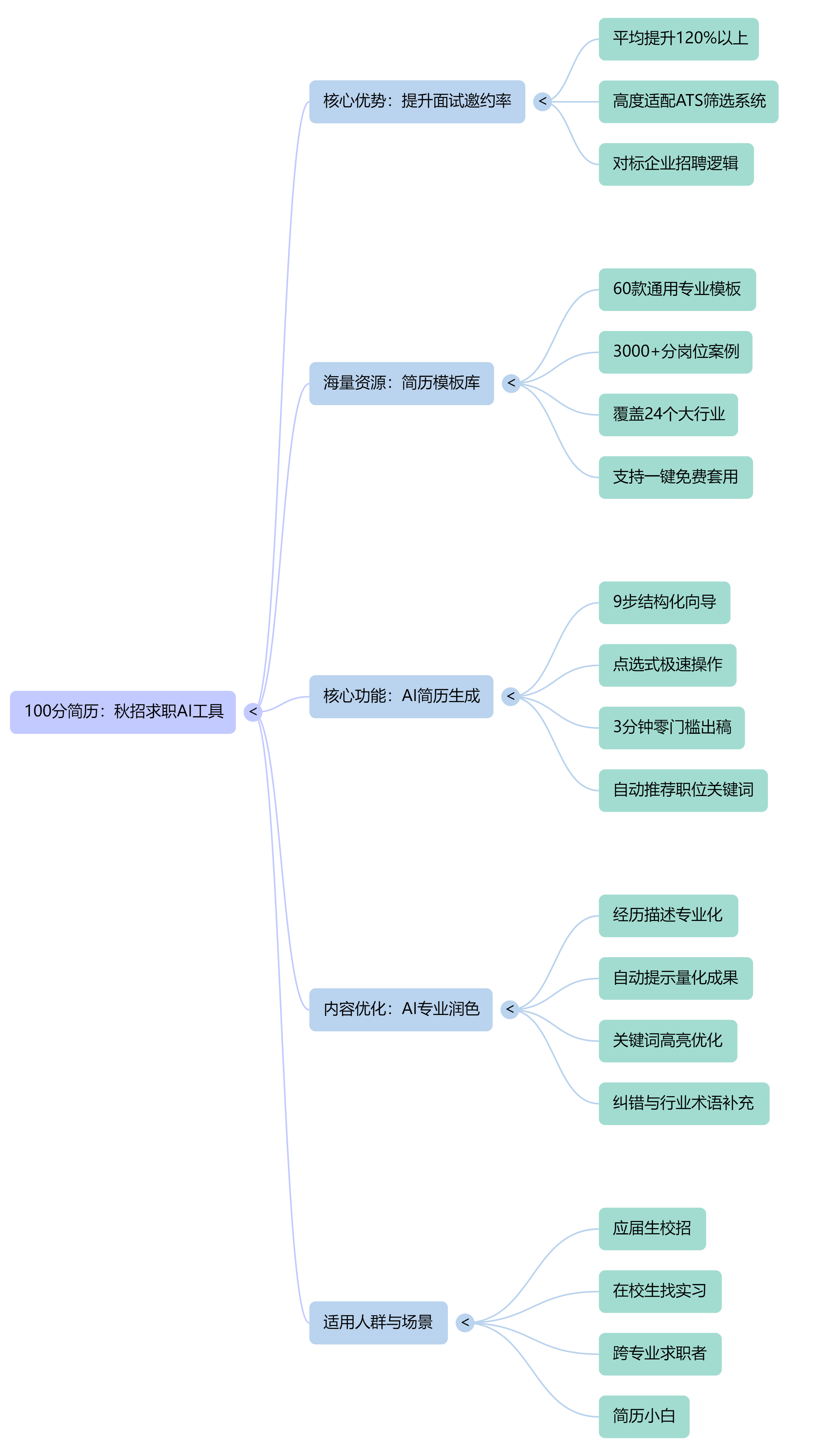 秋招求职是一场信息战,更是一场效率战。与其花大量时间死磕排版,不如利用100分简历这样的AI工具快速产出高质量简历,把省下的时间用来准备面试和刷题。