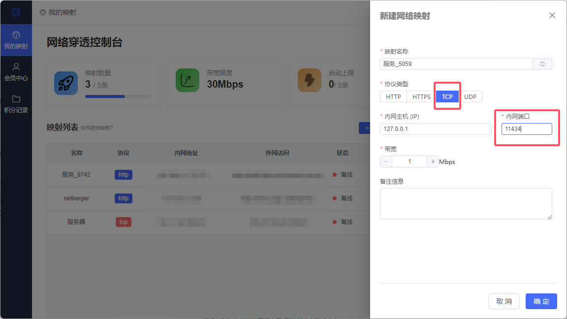 三、实战操作示例(锐通网络内网穿透 + TCP)