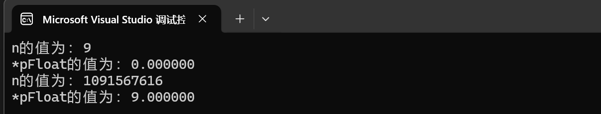 printf("*pFloat的值为:%f\n", *pFloat);//9.000000
