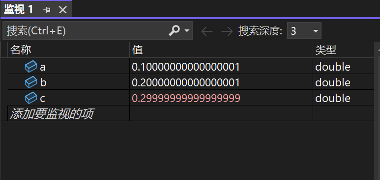 如果纯靠数学思维来思考,那我们自然认为a+b == c,但是通过上面的学习,我们发现有些浮点数其实并不能准确的表示,如图