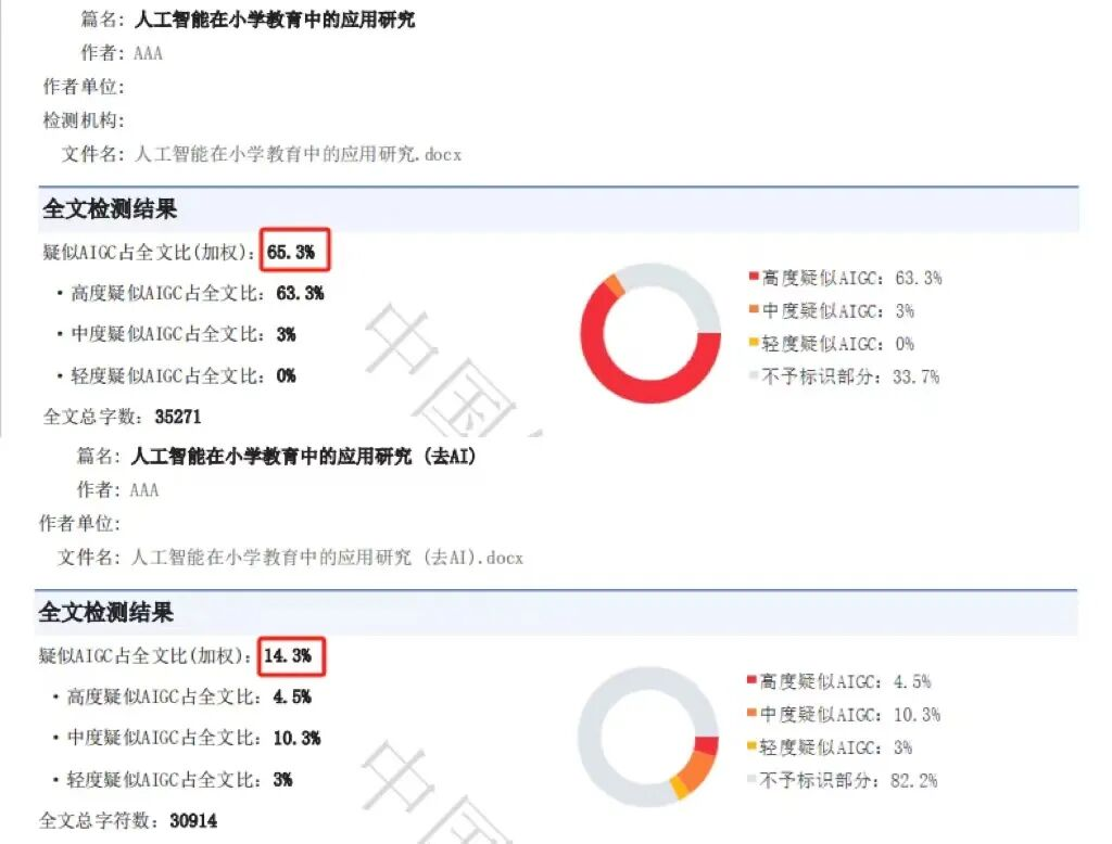 几分钟就把论文ai率从65.3%降低到14.3%,效果立竿见影