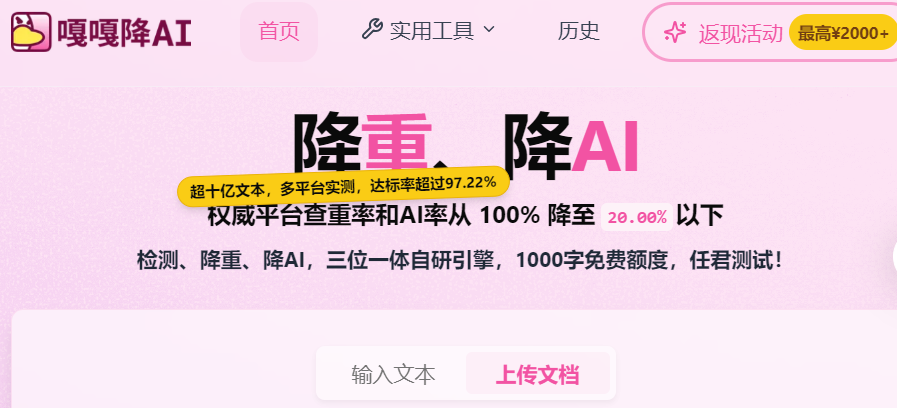 嘎嘎降主要用于降低ai率和查重率,在学术场景方面应用效果还不错,价格是4.8元/千字,对学生党来说可能有些小贵,现在打开官网就送1000字活动,还有返现活动,先薅下这把羊毛~
