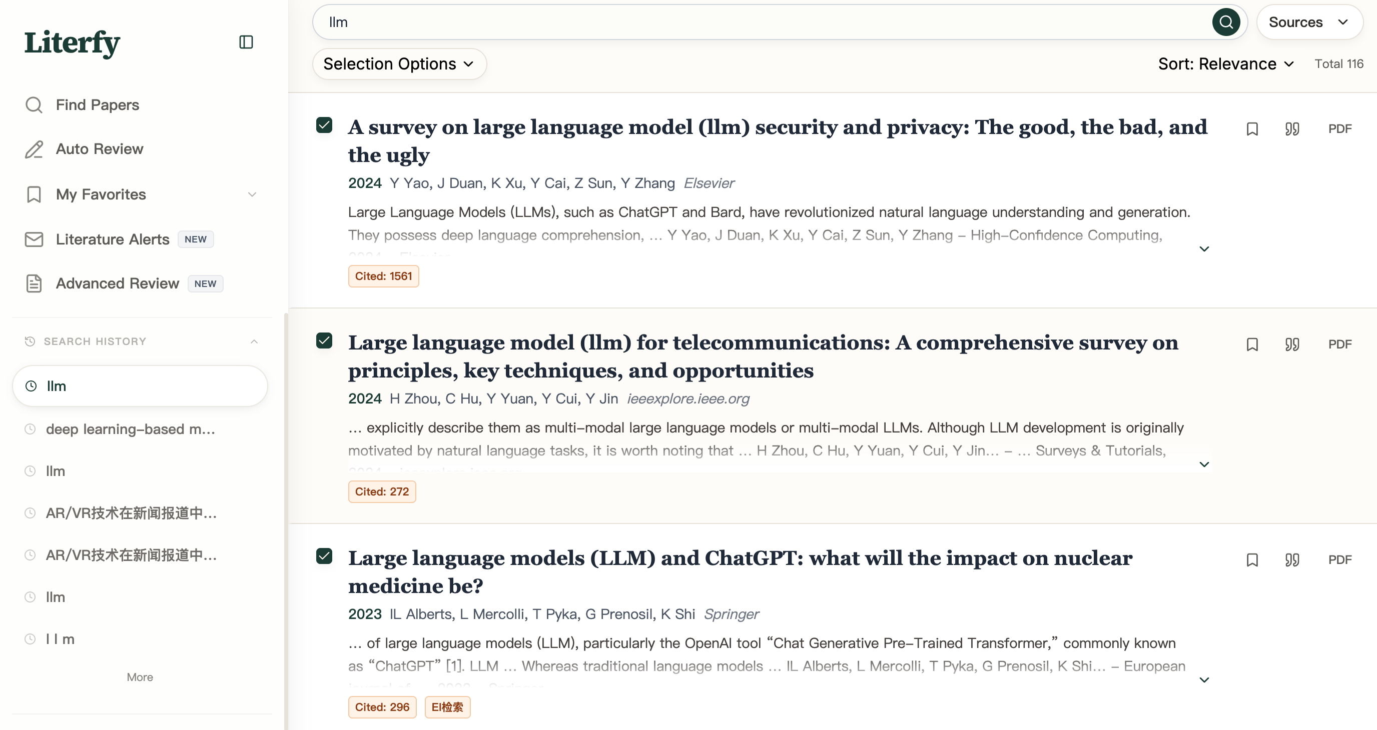 Literfy 解决方案: Literfy 坚持基于真实文献的综述写作。