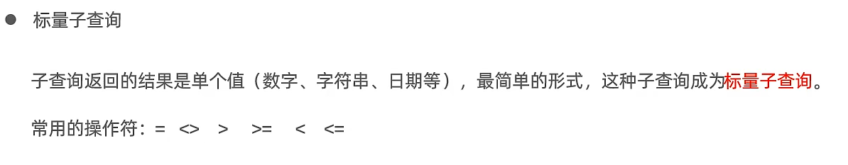 (1)标量子查询: