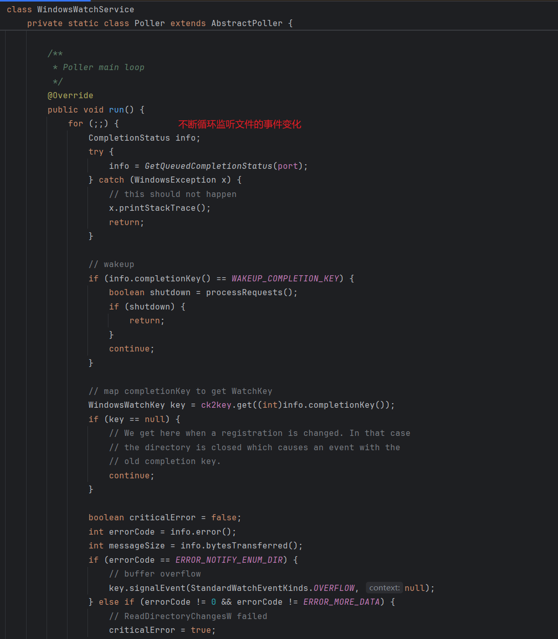 for (WatchEvent<?> pollEvent : watchKey.pollEvents()) {
