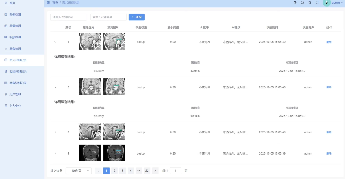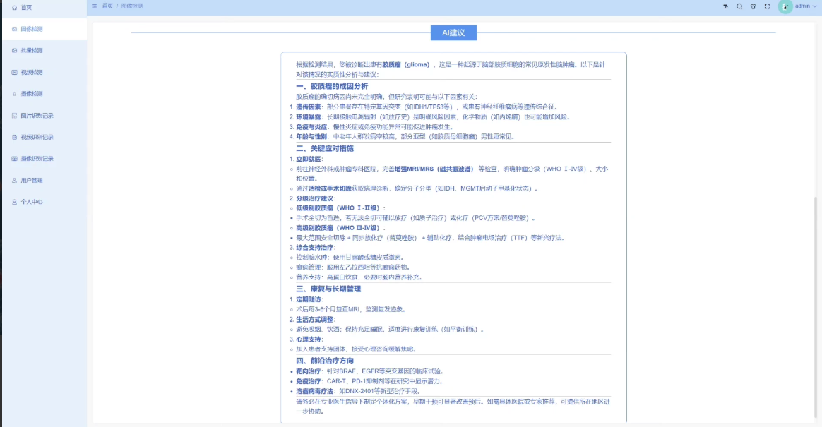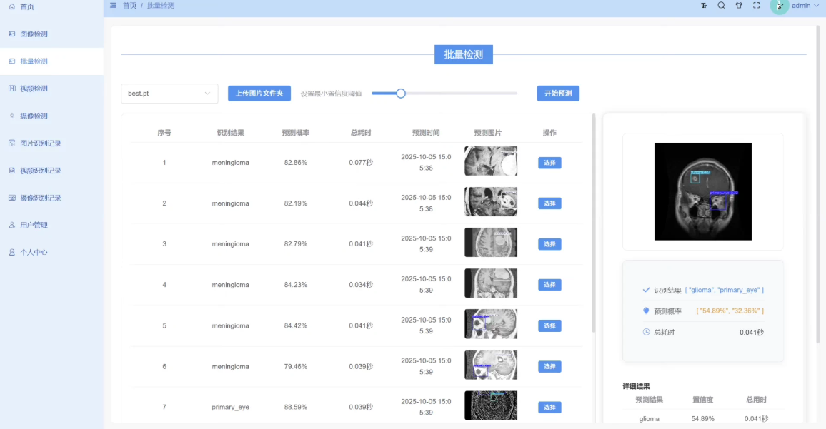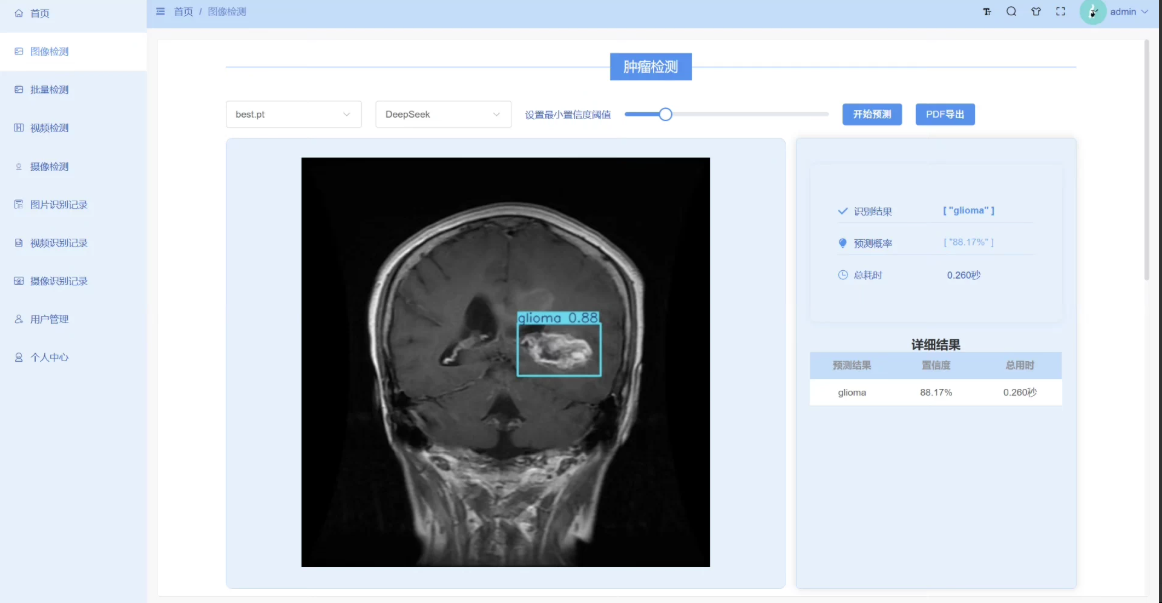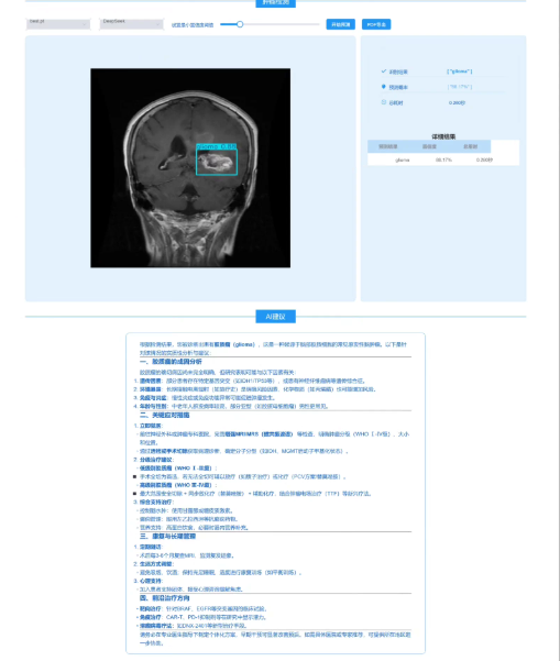 实时监控与预测:支持通过图片进行检测,并自动识别脑部肿瘤。