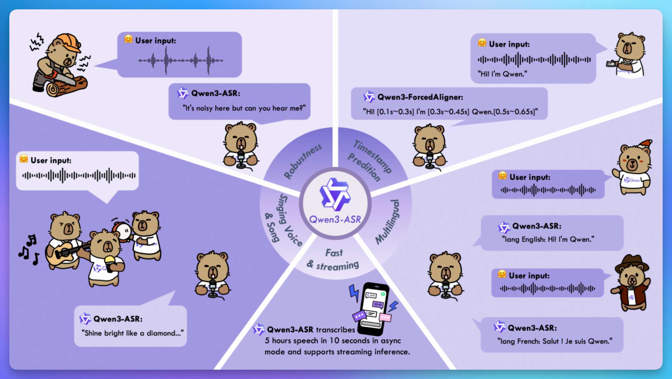 4️⃣ 🎙️ 阿里开源 Qwen3-ASR :支持 52 种语种与方言识别,0.6B 版本 10 秒可处理 5 小时以上音频,方言识别错误率比豆包 ASR 低 20%。