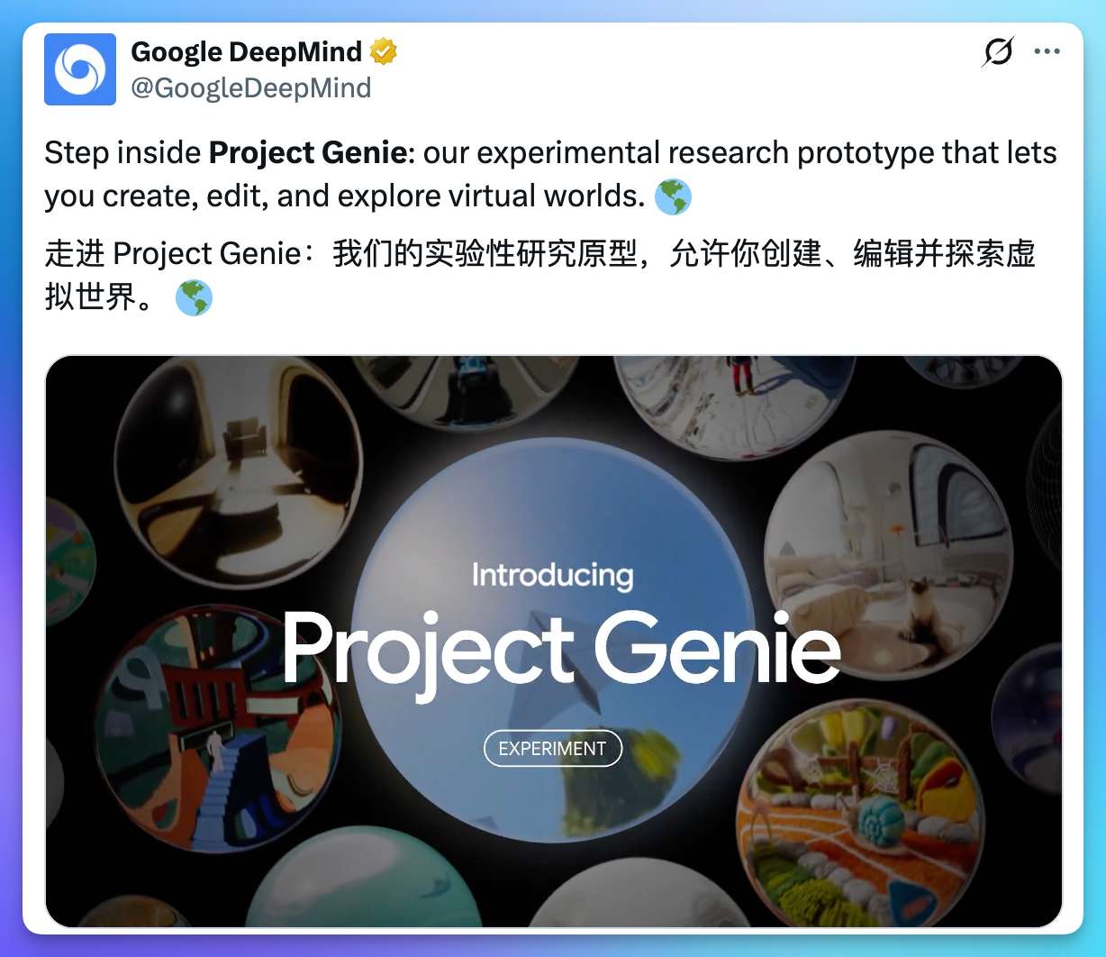 6️⃣ 🌍 谷歌开放 Project Genie :文字或图片提示即可生成可实时探索的 3D 交互世界,支持 720p、20-24 帧渲染,单次探索上限 60 秒。