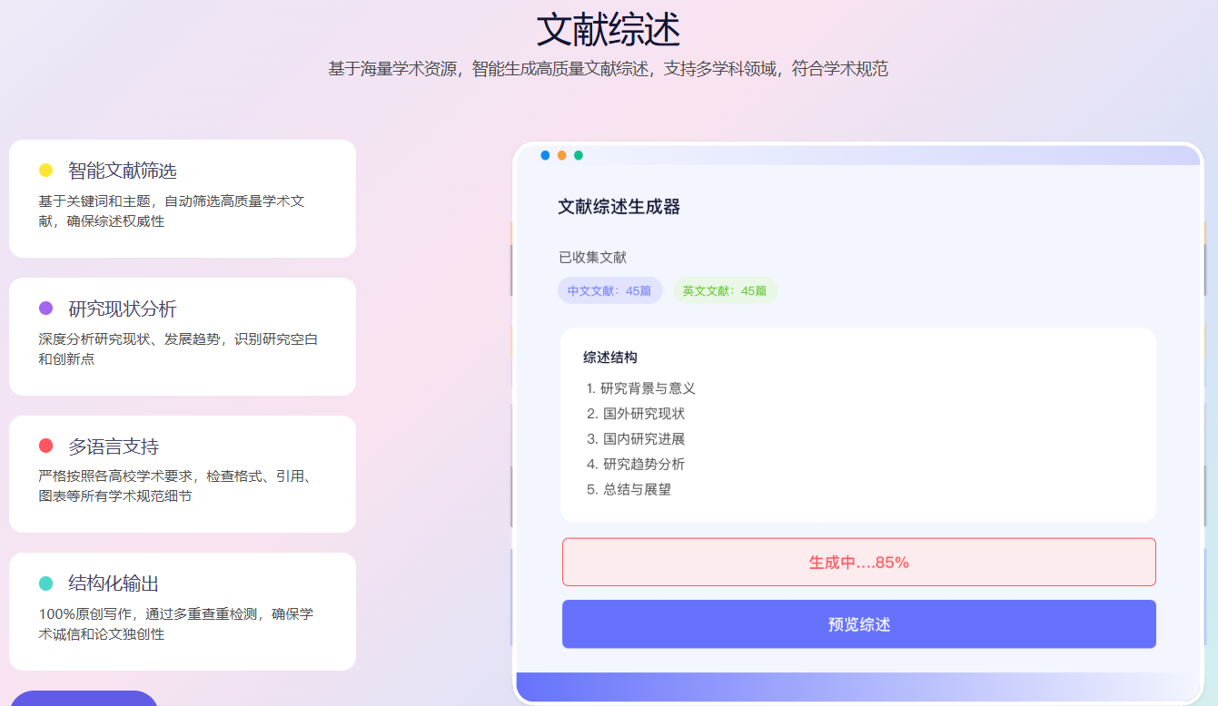 在传统研究模式下,完成一篇合格的文献综述往往需要数周甚至数月时间,大量精力耗费在机械性工作上,反而挤压了真正用于思考和分析的时间。