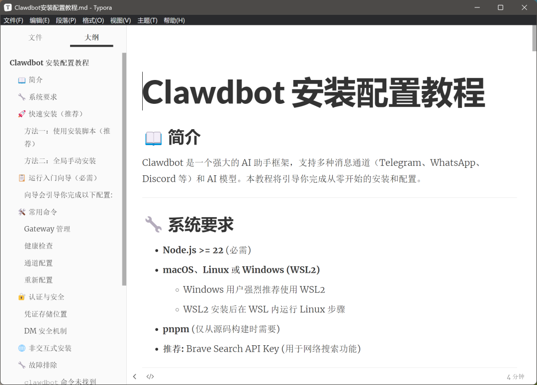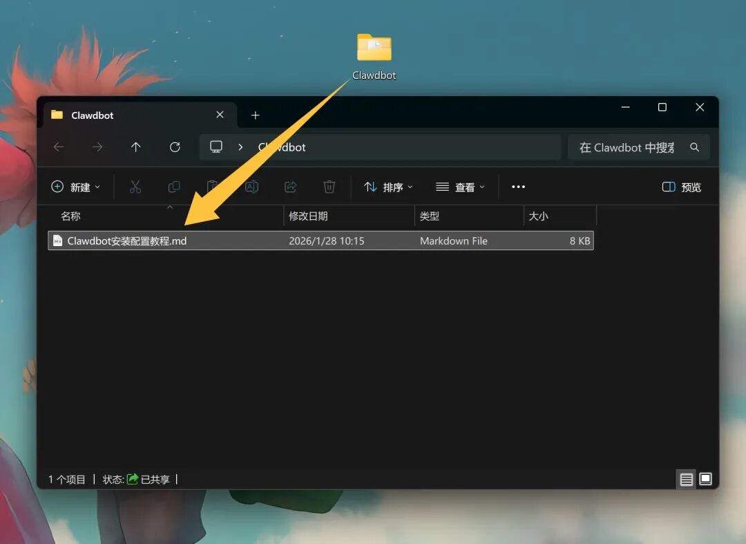 然后让他帮我生成了一个 Clawdbot 文件夹,并在里面写一篇安装和配置教程。