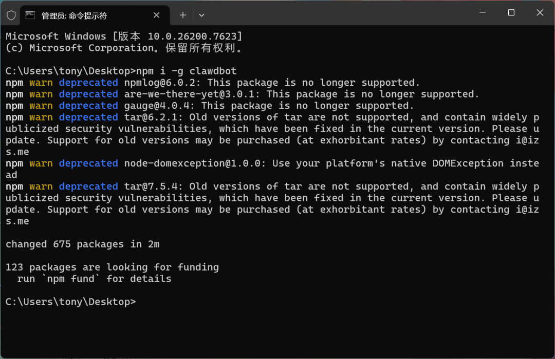 安装 Clawdbot 其实非常简单,只要一条命令: