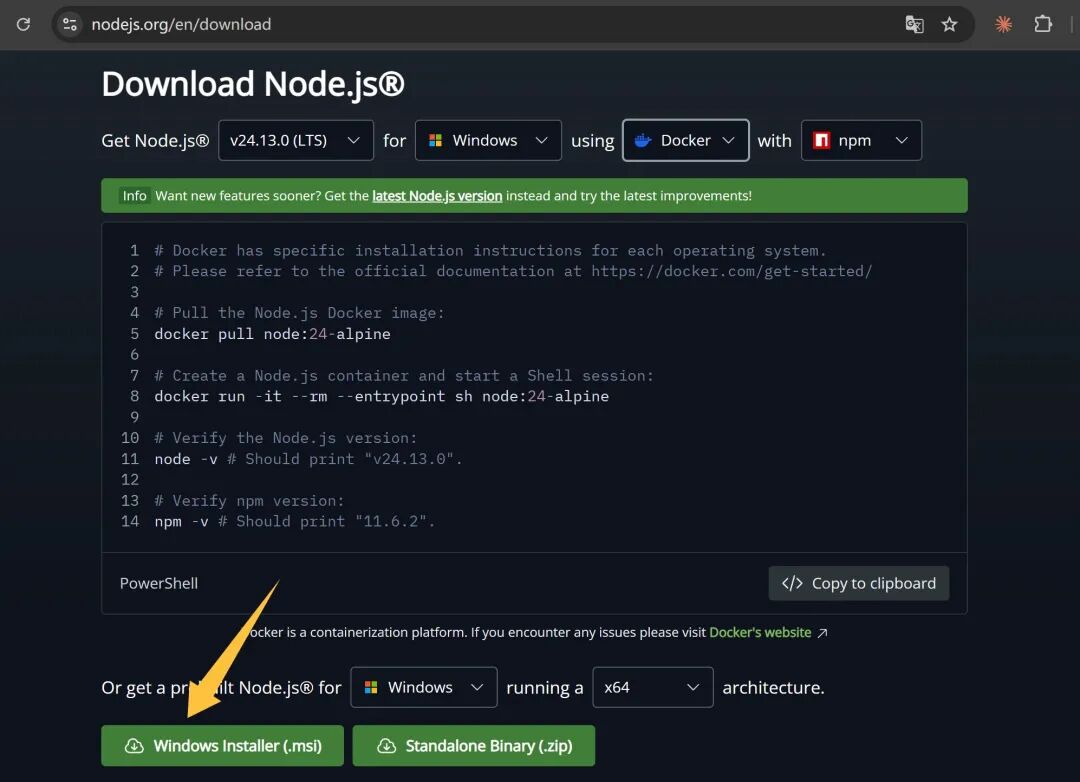 首先做一个基础准备,如果没有 Node.js 的话先安装一下。