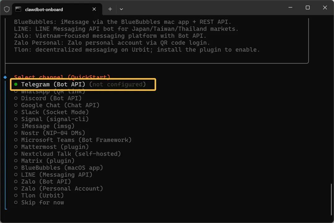 模型是 bot 的大脑,接下来就要给他装上“耳朵和嘴巴”了。所谓的通道其实就是交互工具,可以通过这个工具下达指令,接收反馈。