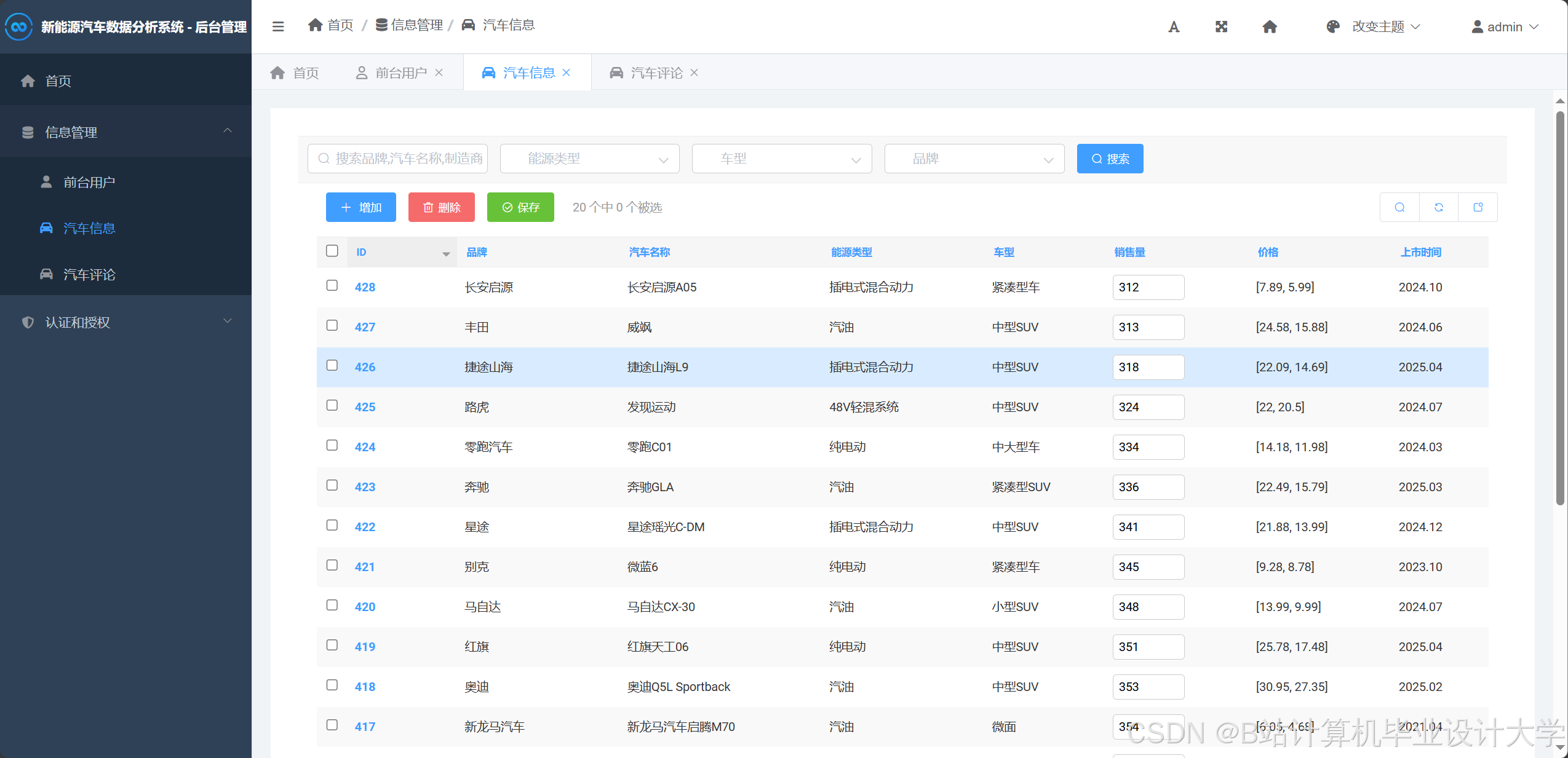 - 模型定义:通过Django ORM定义数据表结构(如用户表、车型表、销售表),实现增删改查操作。例如: