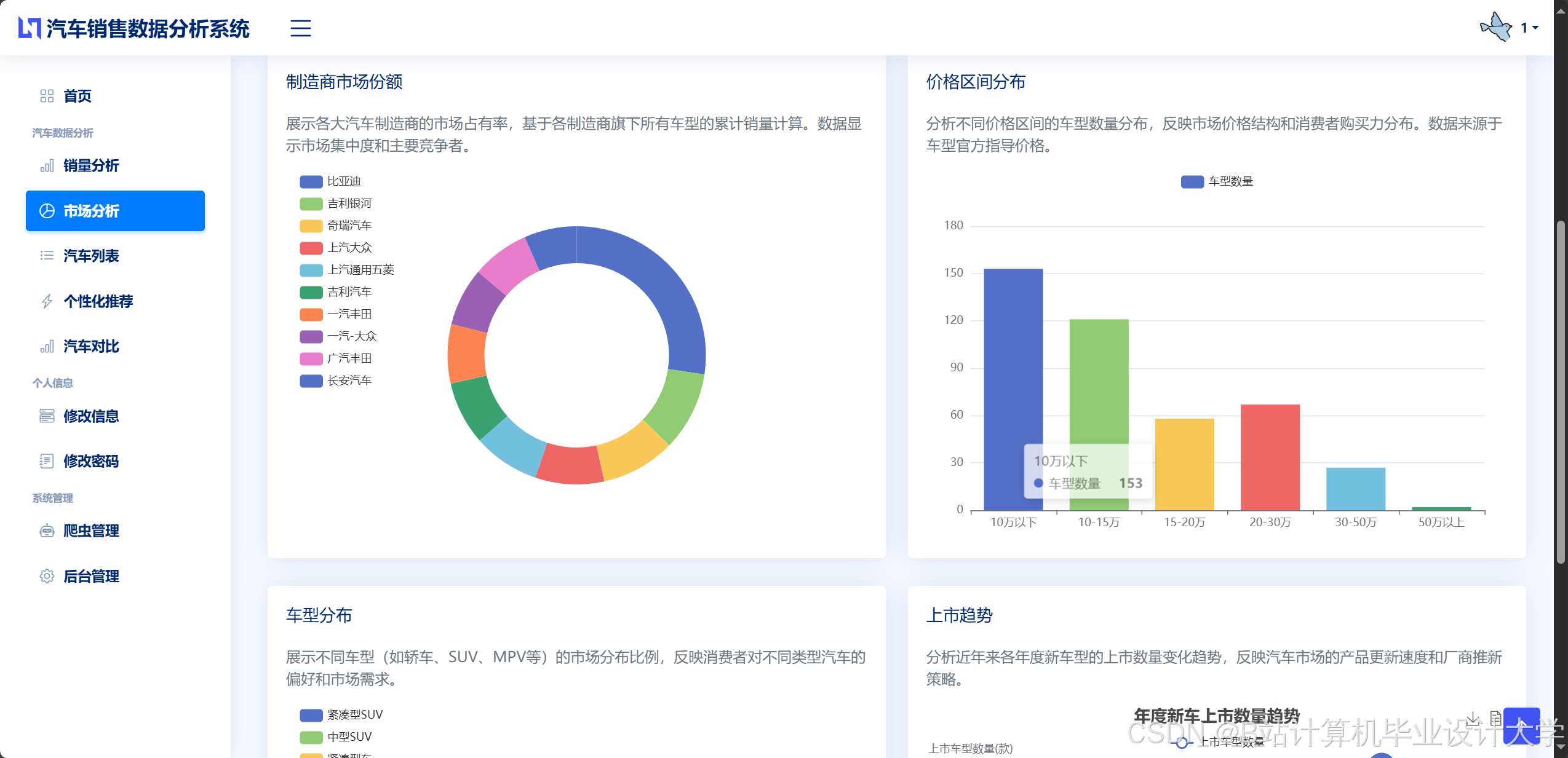 - 动态仪表盘:展示销量趋势、区域分布、品牌占比等。