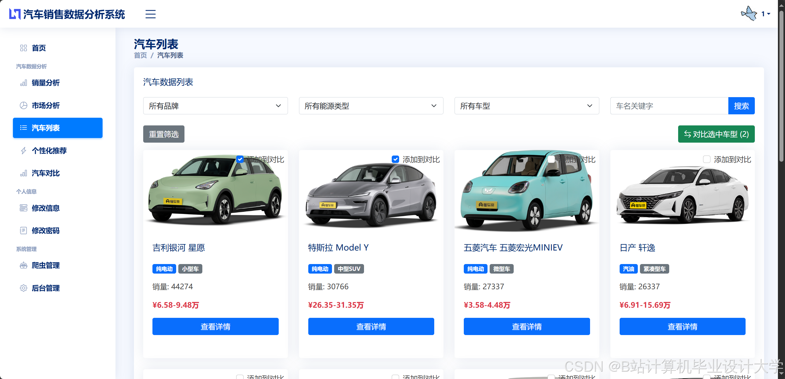- Web应用系统:支持多用户访问的新能源汽车销量分析平台。