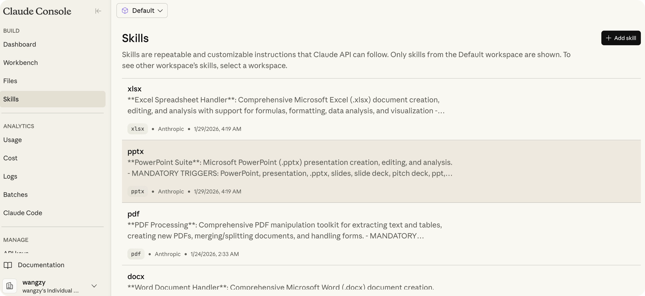 b、安装pptx skill