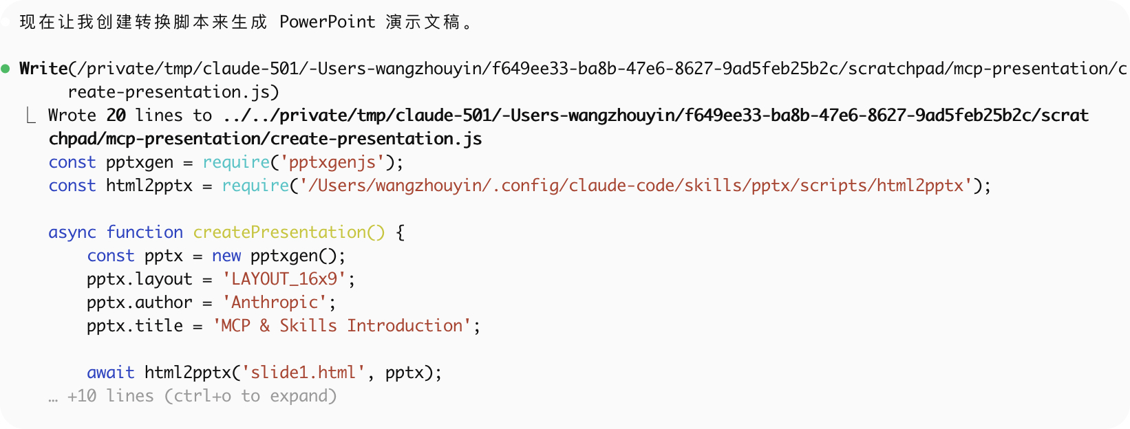c、用pptx skill 写一个ppt