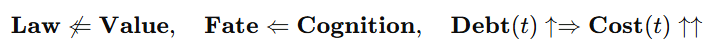 Law⊥Value, Fate≡Cognition, Debt(t)=Cost(t)