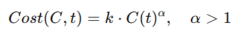 - Reckoning Cost Function: Cost(C,t)=k⋅C(t)α,α>1
