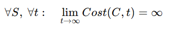 Axiom Expression:∀S,∀t:limt→∞Cost(C,t)=∞