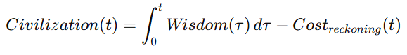 Core Equation (Civilizational Layer):Civilization=∫Wisdom(t)dt−Cost(t)