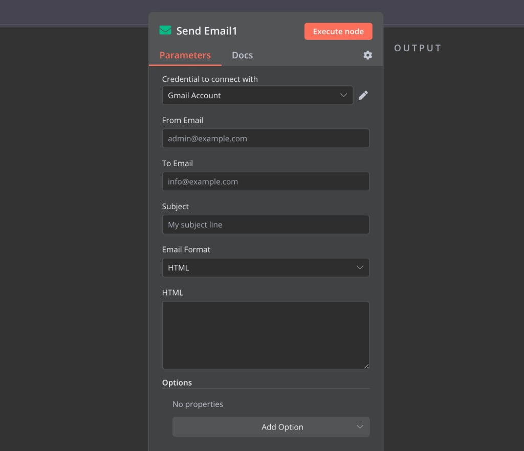 步骤 2:添加 Send Email 节点