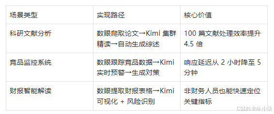 数眼智能 API 以结构化数据采集、多源信息清洗、行业指标计算为核心能力,而 Kimi-2.5 凭借多模态理解、Agent 集群协作、长文档处理的优势(),二者可形成 “数据输入→智能处理→价值输出” 的完美闭环: