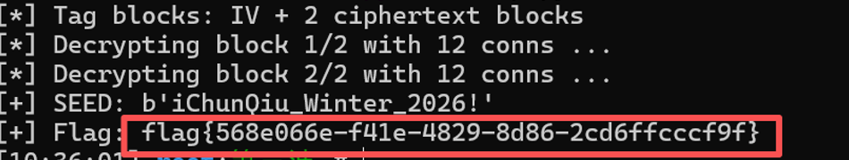 根据题面给的 V2.0 逻辑:先用 PBKDF2(user_id, SALT, count=1000, dkLen=16) 派生 AES-128 密钥,再用 AES-128-CBC(固定 IV=Dynamic_IV_2026!)加密,最后把密文 hex 做一层“字符映射表”混淆。