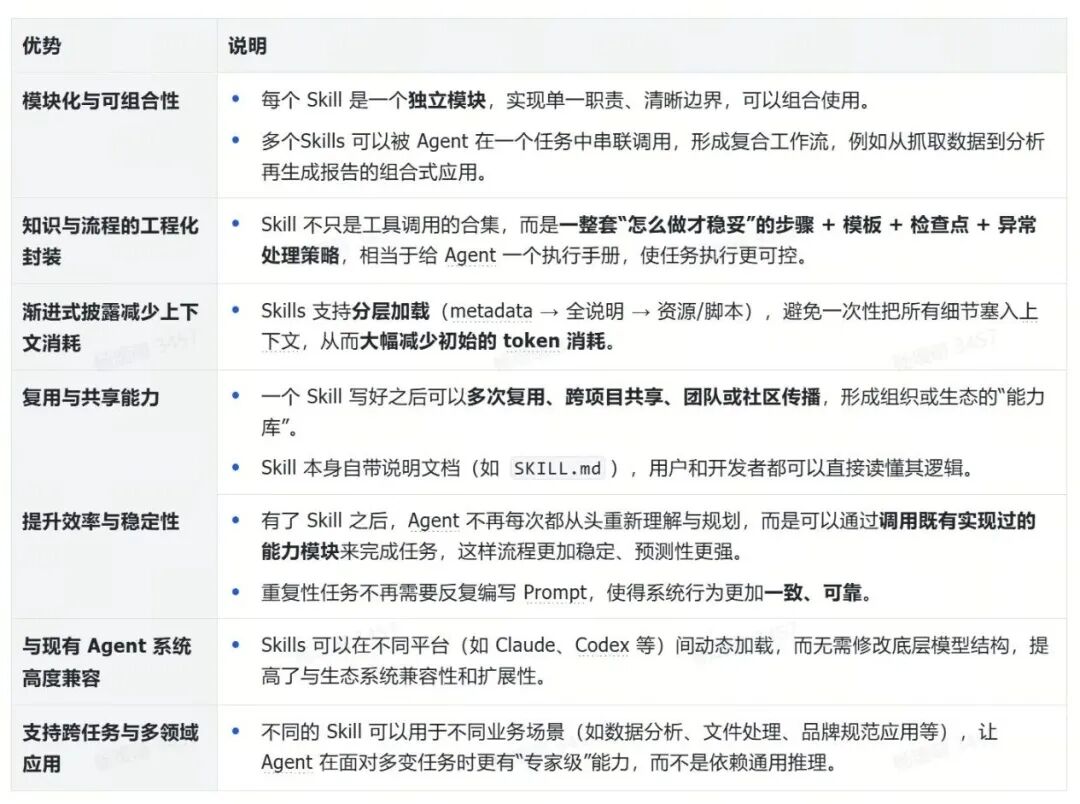 因此,Skills 并不是简单的一段提示词,而是一个将“怎么做一件事”工程化、模块化后的能力单元。