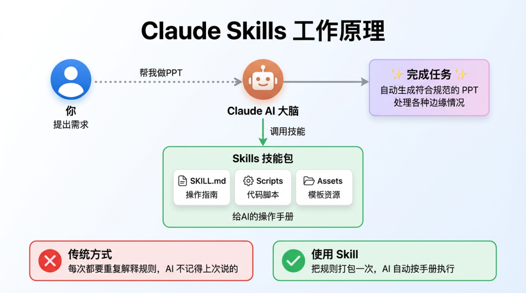 Anthropic在2025年推出的Agent Skills已成为跨平台公开标准,通过封装任务知识、步骤和工具,为大模型提供标准化能力组件。文章详细介绍了Skills的定义、构成、运作机制及开发方式,包括Claude Code的手动/自动开发与Coze平台的零门槛创建。Skills可实现多技能协同执行,显著提升任务完成质量和效率,是开发者构建高效Agent的重要工具,值得深入学习收藏。