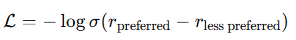如果 rA≫rB 即好回答得分远高于差回答,loss 趋近于 0(模型判断正确,损失很小)
