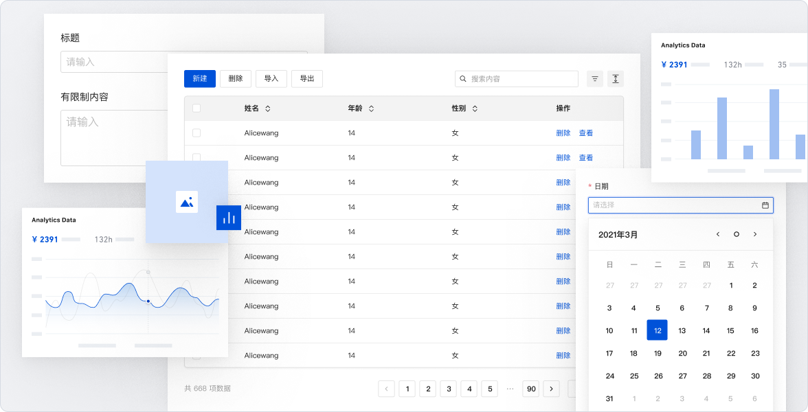 宜搭的报表模块与表单、流程数据深度联动,支持多数据源聚合分析,可将多张表单数据进行统计、筛选、合并、运算等操作,生成各类可视化报表。提供多种图表类型,支持多维度数据展示、对比分析,可根据企业需求自定义报表样式,帮助企业快速掌握业务数据情况。