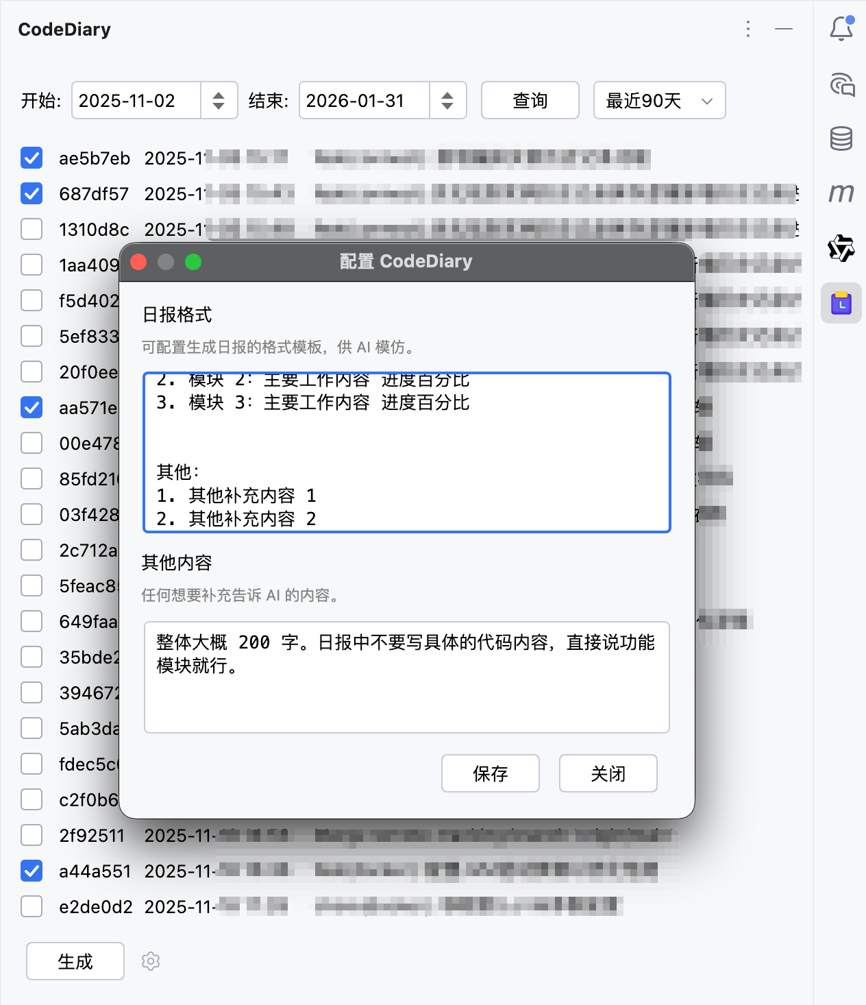 CodeDiary 提供了灵活的配置选项,让生成的报告更符合你的个人风格和公司规范。