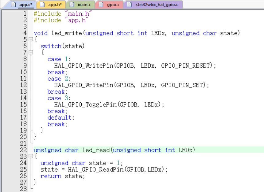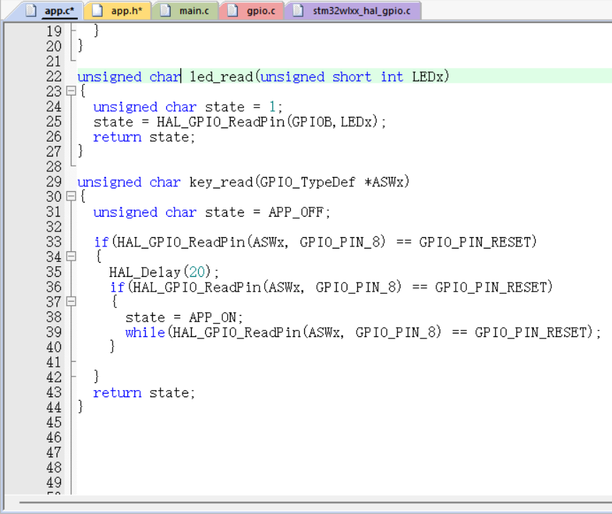 - 为什么要宏定义状态?:用直观的名称(APP_ON/OFF)替代数字,避免后续代码中混淆,提高可读性和可维护性;