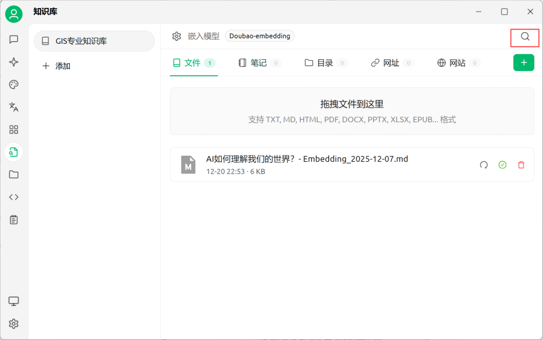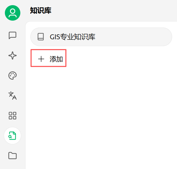 - 点击左侧工具栏的知识库图标,进入管理页面。