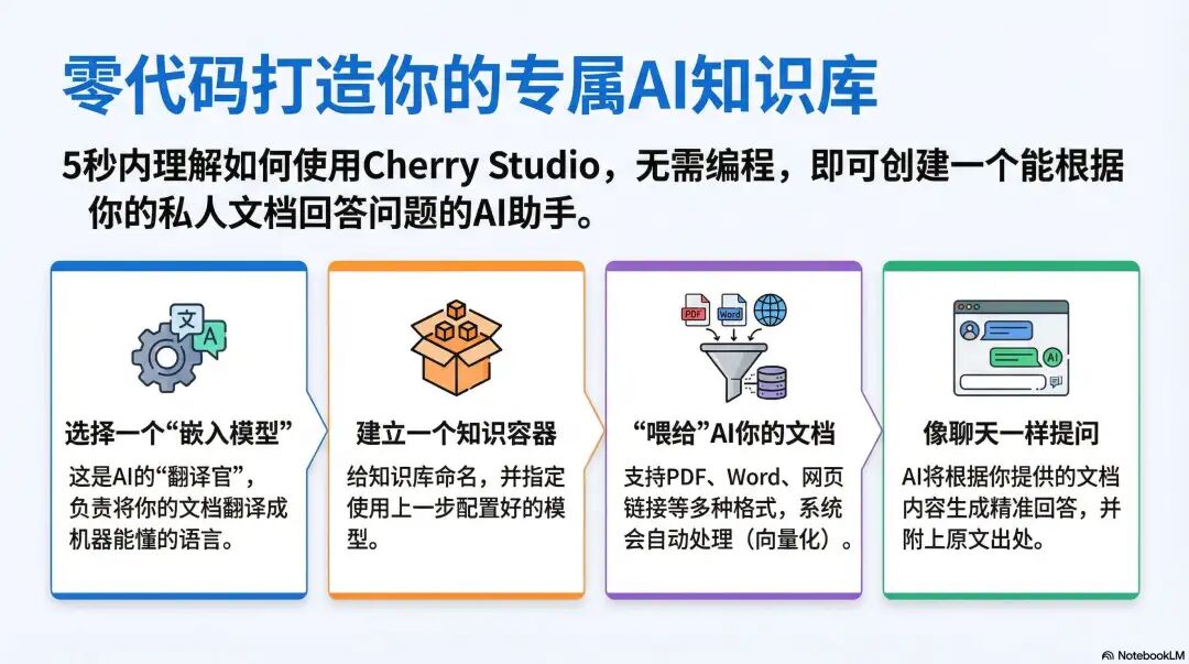 通过 Cherry Studio,我们不需要写一行代码,就复现了 Embedding 技术的核心应用场景,轻松搭建起属于自己的 AI 知识库,让大模型既能读懂私有文档,又能摆脱 “幻觉” 困扰。