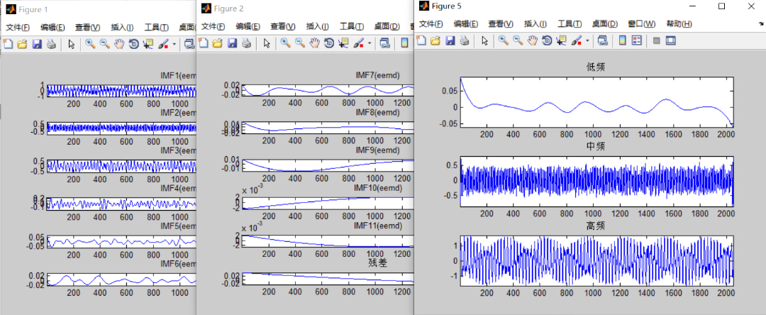 对序列信号进行eemd分解,计算样本熵,根据样本熵的大小进行信号重构,重构为低频中频高频信号 ...