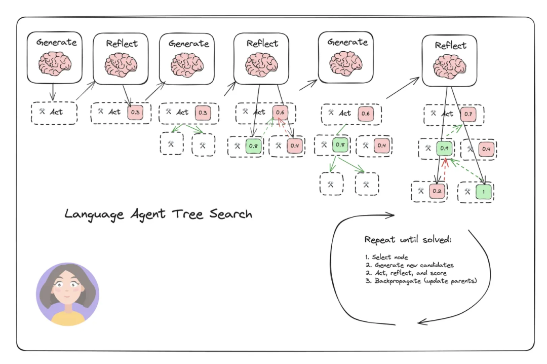 草稿模式(Drafts):LLM 智能体的训练依赖于生成草稿并同时评估。这一选择并非显而易见,因为早期研究主要集中在扩展搜索到整个 token 序列。计算限制和「推理」模型的突破推动了这一转变。典型的训练过程是让模型生成逻辑序列,假设能得出正确答案的序列更可能是正确的。这可能导致反直觉的结果(如 DeepSeek-R0偶尔在英语和中文间切换)。然而,正如苦涩的教训所示,强化学习只关注结果的有效性,甚至允许非正统或计划外的捷径。就像智能体在迷宫中寻找出路,语言模型必须通过纯粹推理找到路径 —— 没有预定义提示,只有奖励和获取奖励的方式。